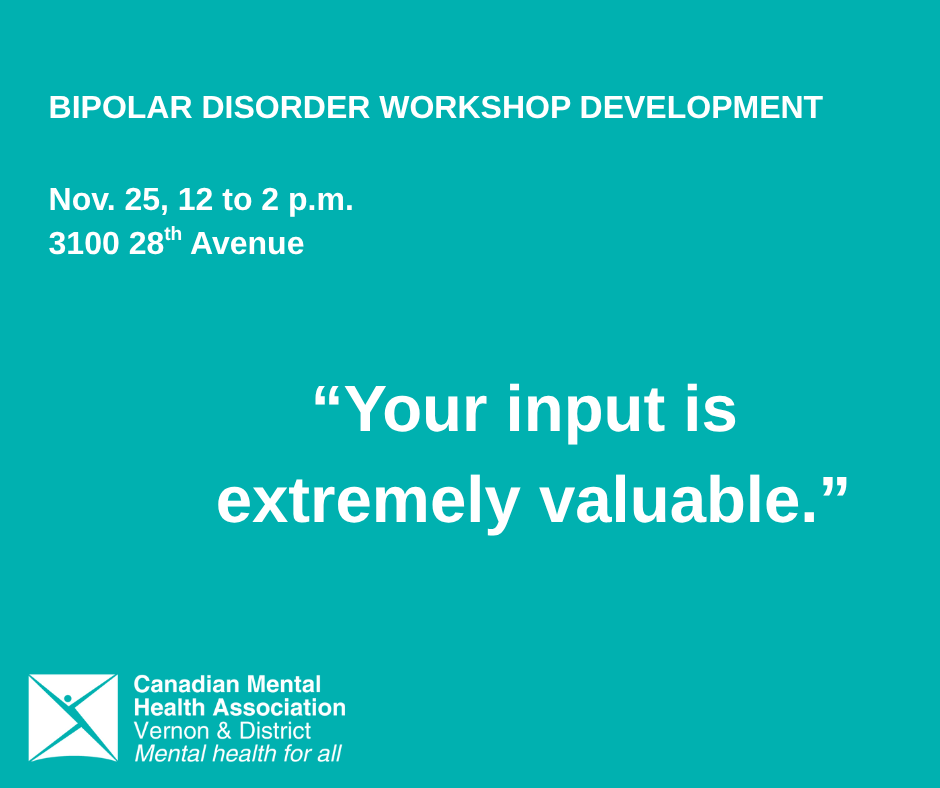 CMHA Vernon’s Pathways to Wellness is looking for individuals with lived experience with bipolar disorder to join the co-development team.